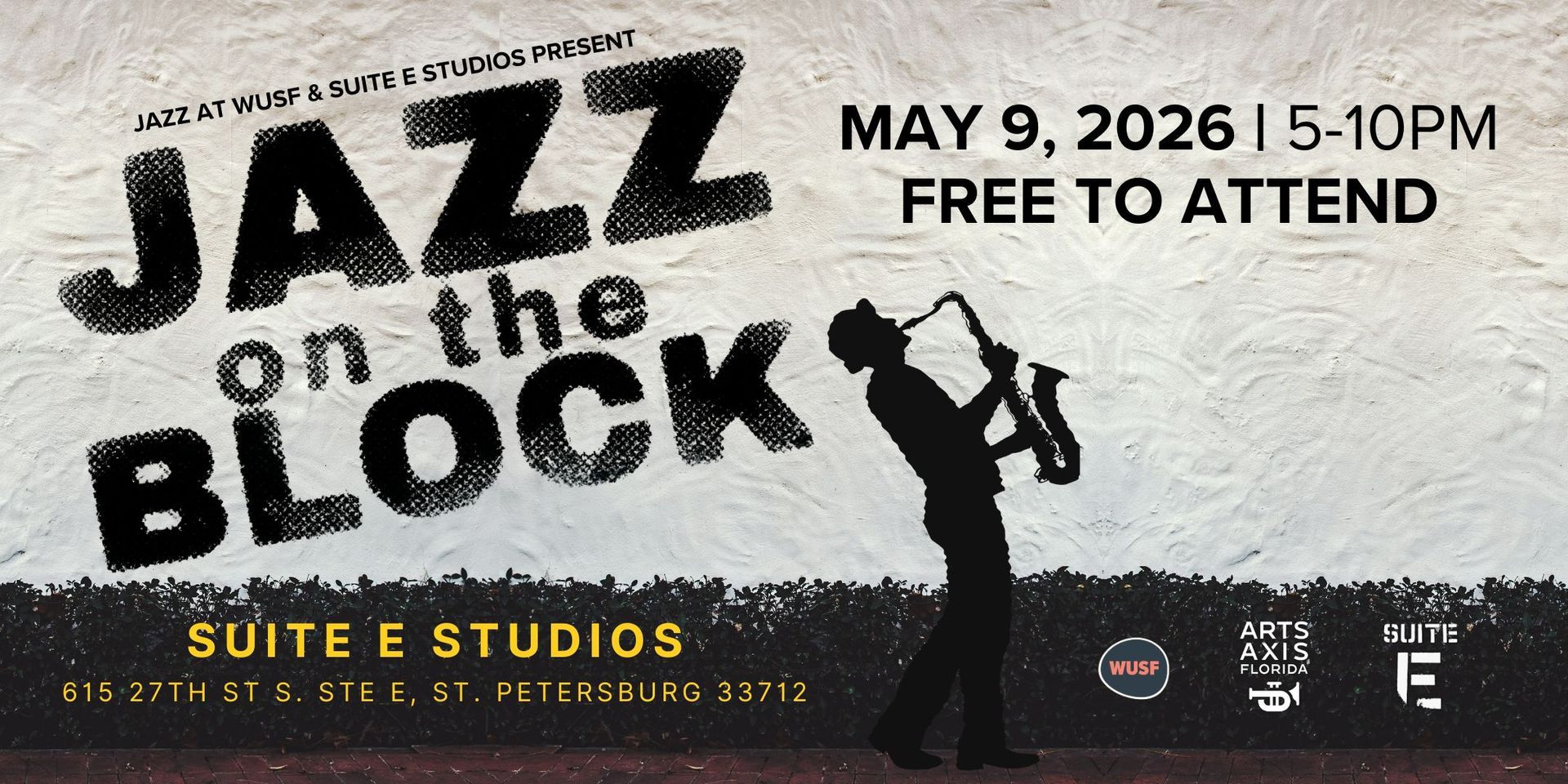 WUSF is proud to present Jazz on the Block: a Celebration of Live Local Jazz, a vibrant community event hosted at Suite E Studios in St. Petersburg. This free, fiveāhour celebration of music and culture will take place from 5:00 PM to 10:00 PM on Saturday, May 9, 2026 coinciding with Second Saturday Art Walk in the Warehouse Arts District in downtown St. Petersburg, Florida. This show is designed to bring a fresh, modern energy to the local jazz scene.